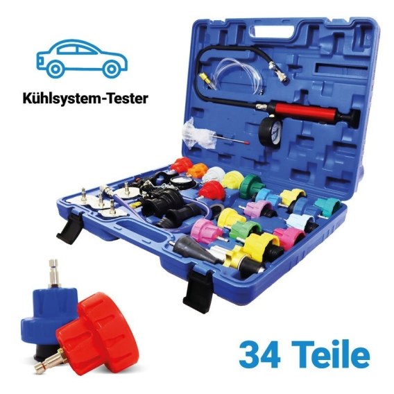 Bituxx 34‑częściowy tester układu chłodzenia to profesjonalny zestaw do diagnozy, testowania szczelności, odpowietrzania i napełniania układu chłodzenia w samochodach. Zestaw pozwala łatwo sprawdzić, czy układ chłodzenia jest szczelny – wykrywając nieszczelności w chłodnicy, przewodach, korku chłodnicy, zbiorniku wyrównawczym, nagrzewnicy czy przewodach — a także szybko i czysto uzupełnić płyn chłodniczy.
