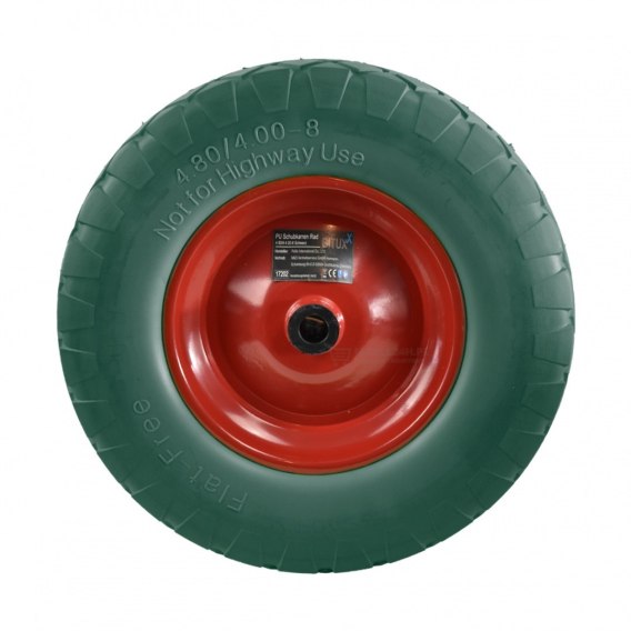Nasze koło do taczki jest całkowicie pełne dzięki czemu możesz zapomnieć o pompowaniu lub wymianie przebitych opon i dętek.