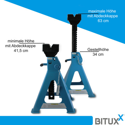 Profesjonalne podstawki pod samochód. Nośność jednej podstawki to 6 ton. Podstawki z 13 - stopniową regulacją. Zakres pracy od 41,5 cm do 61 cm. Idealne narzędzia dla mechaników, salonów samochodowych jak i wszystkich zmotoryzowanych.